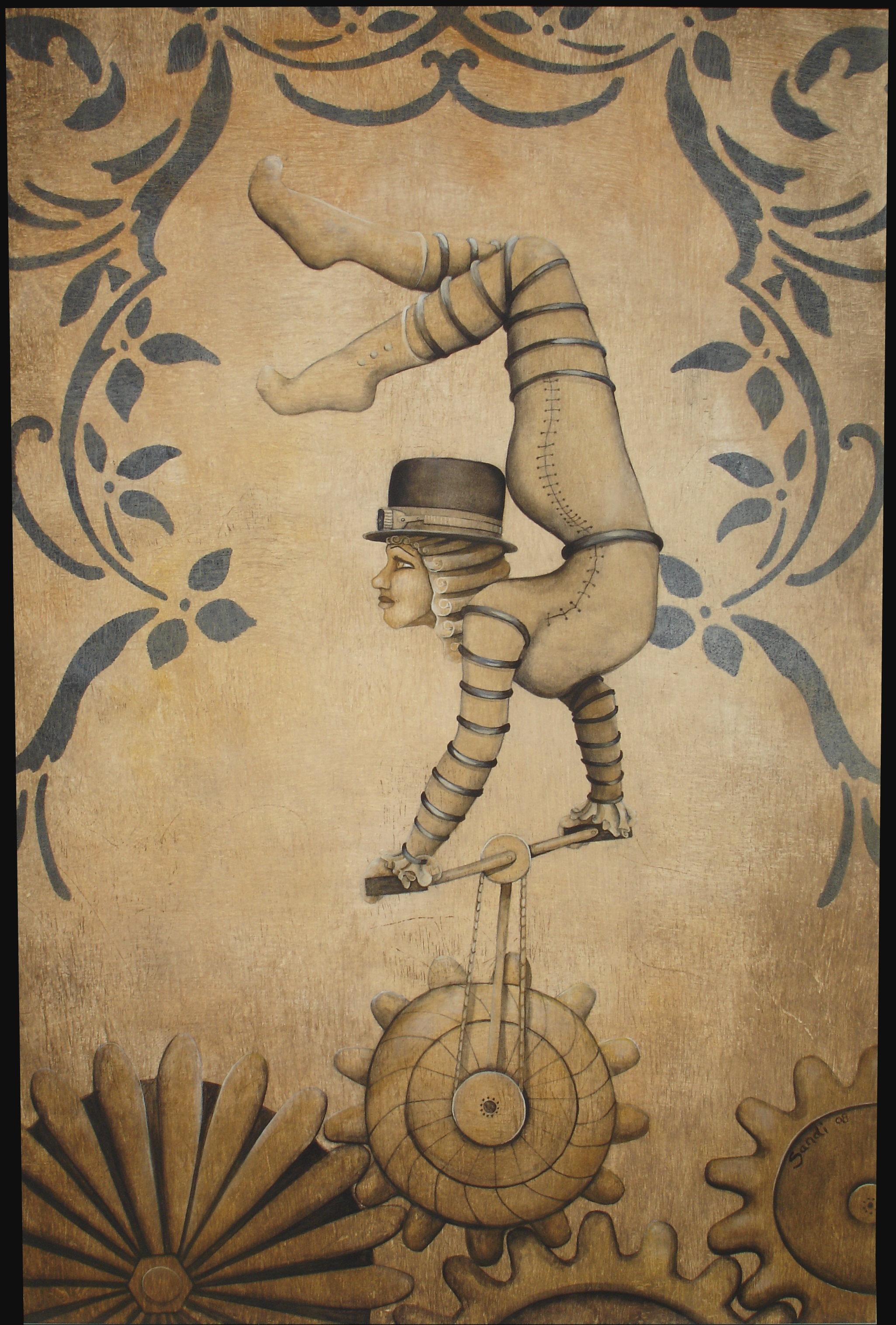 Featured in the art book "1,000 Steampunk Creations" acrylic on illustration board 16x20 carnival study