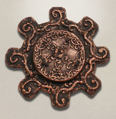 Made of materials rescued from the garbage such as old paint clothes, packing Styrofoam & previously used paper reinforced & sealed with nontoxic glue & paints Est 12" diameter